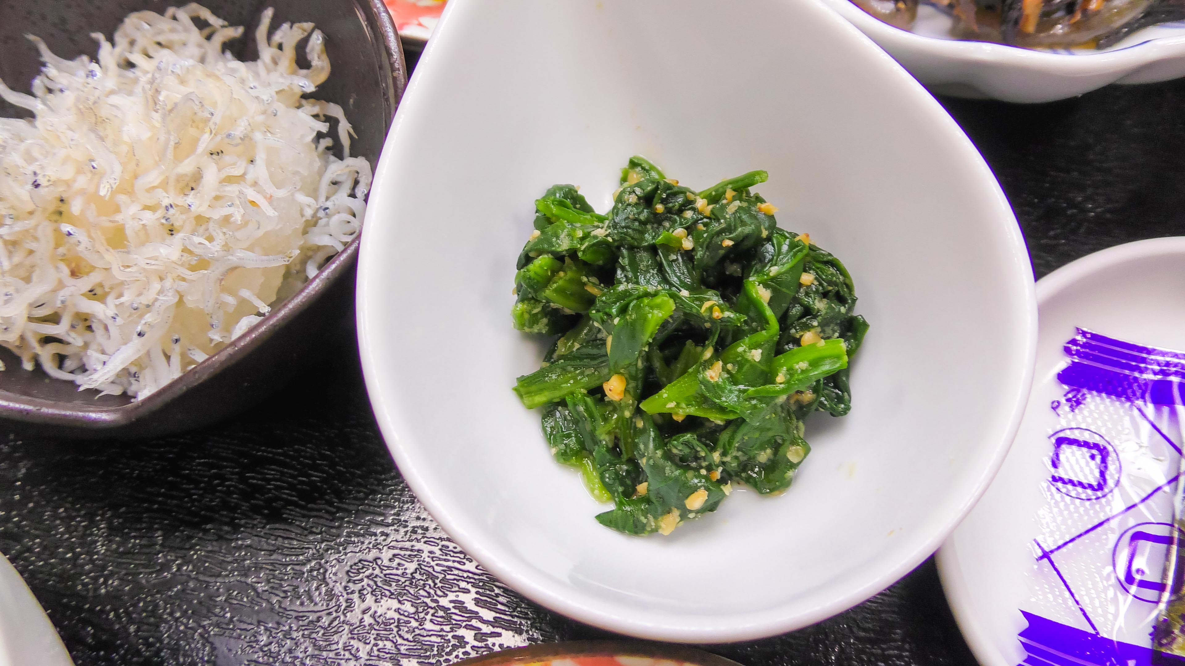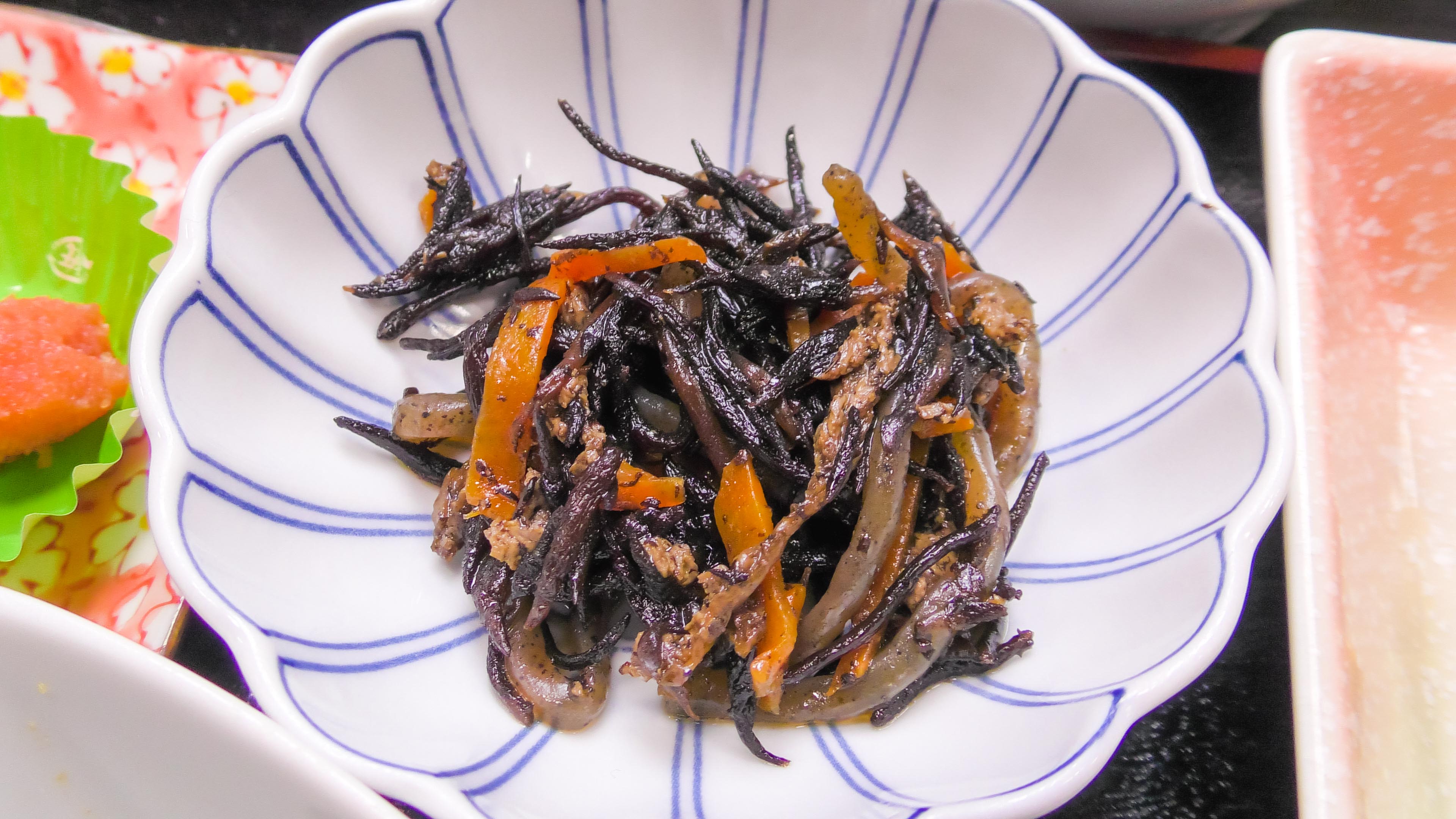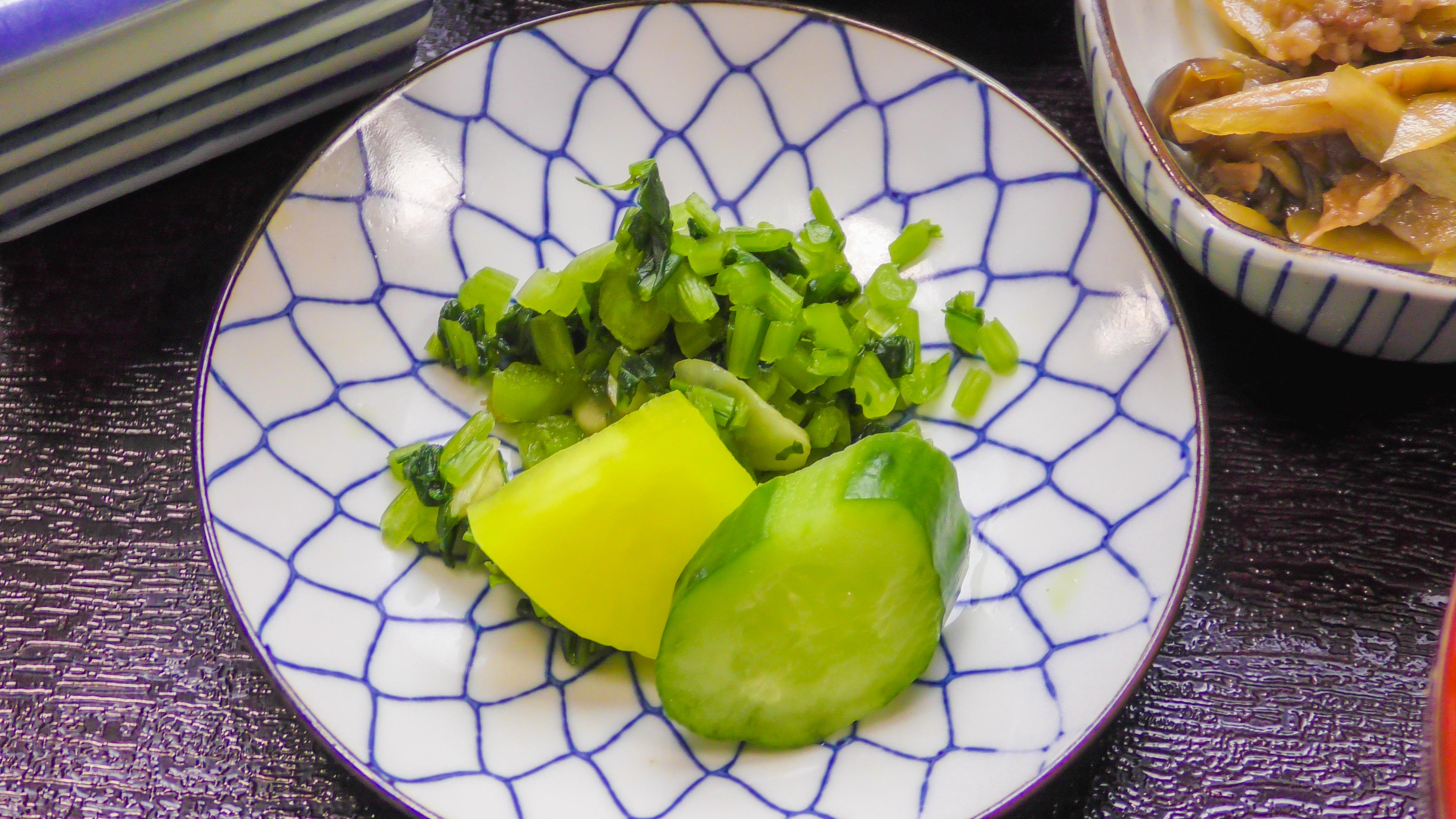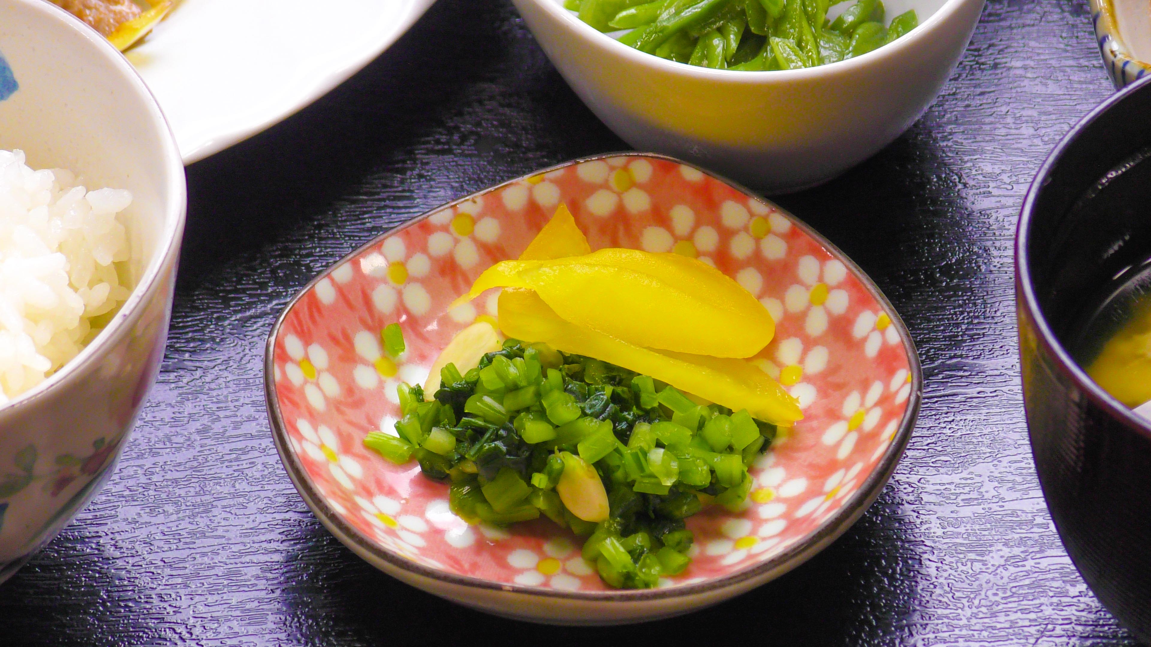 繊維質たっぷりの根菜や、ビタミンミネラル豊富な青物野菜で作った煮物と小鉢は、栄養満点の旬の味。