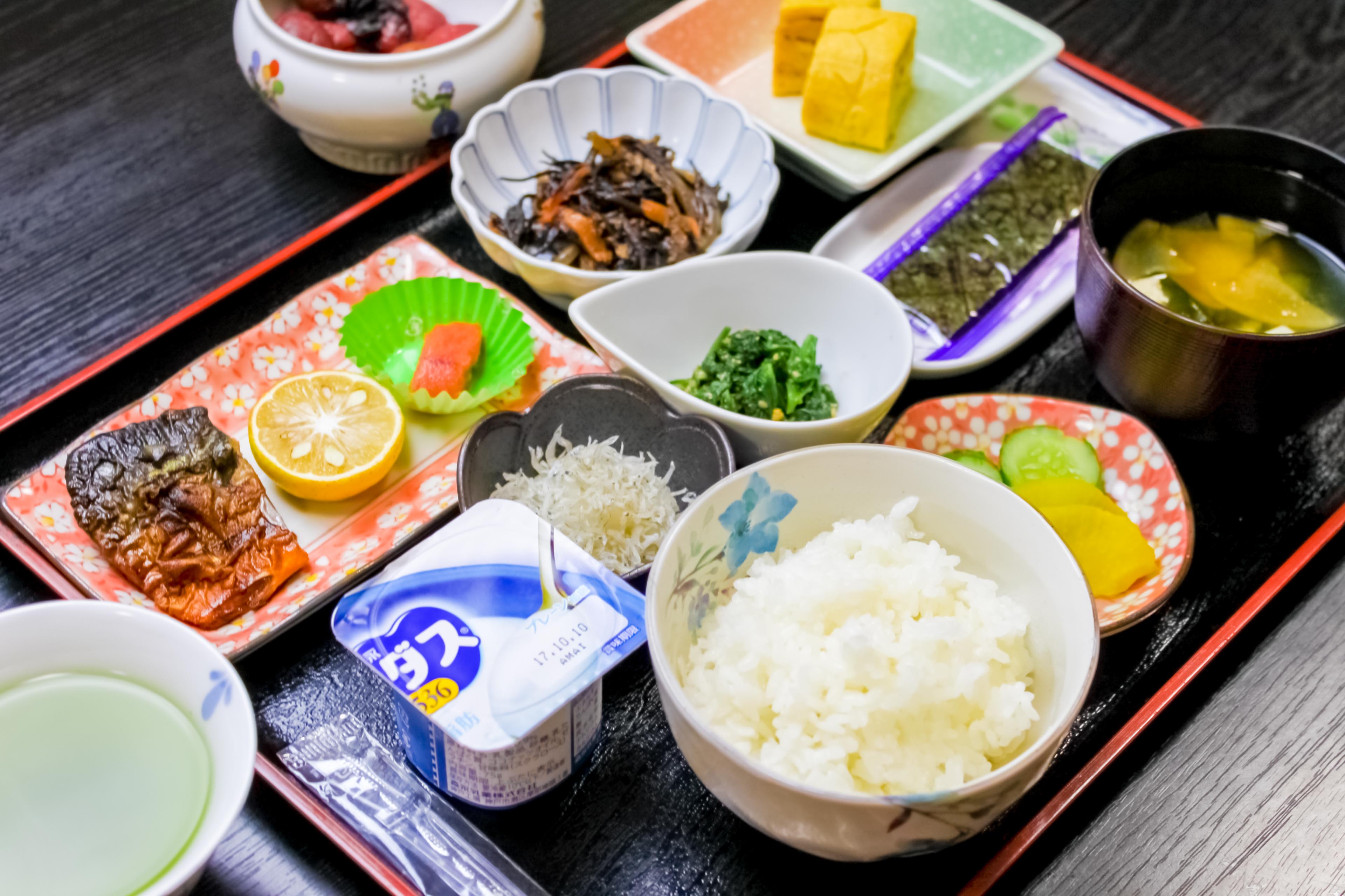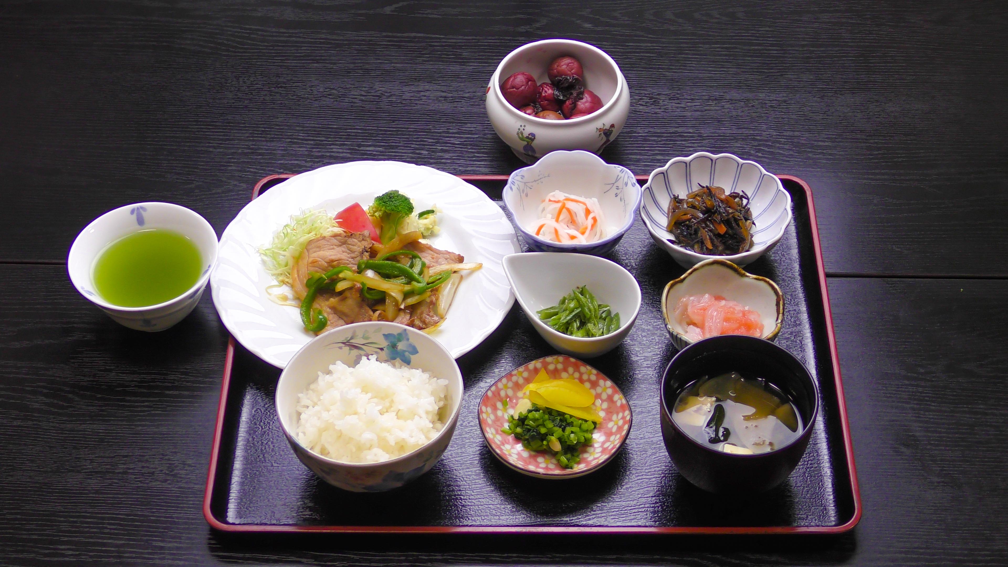 毎朝手作りのだしまき卵や、自家製特大梅干しなどなど、品数豊富で栄養満点。