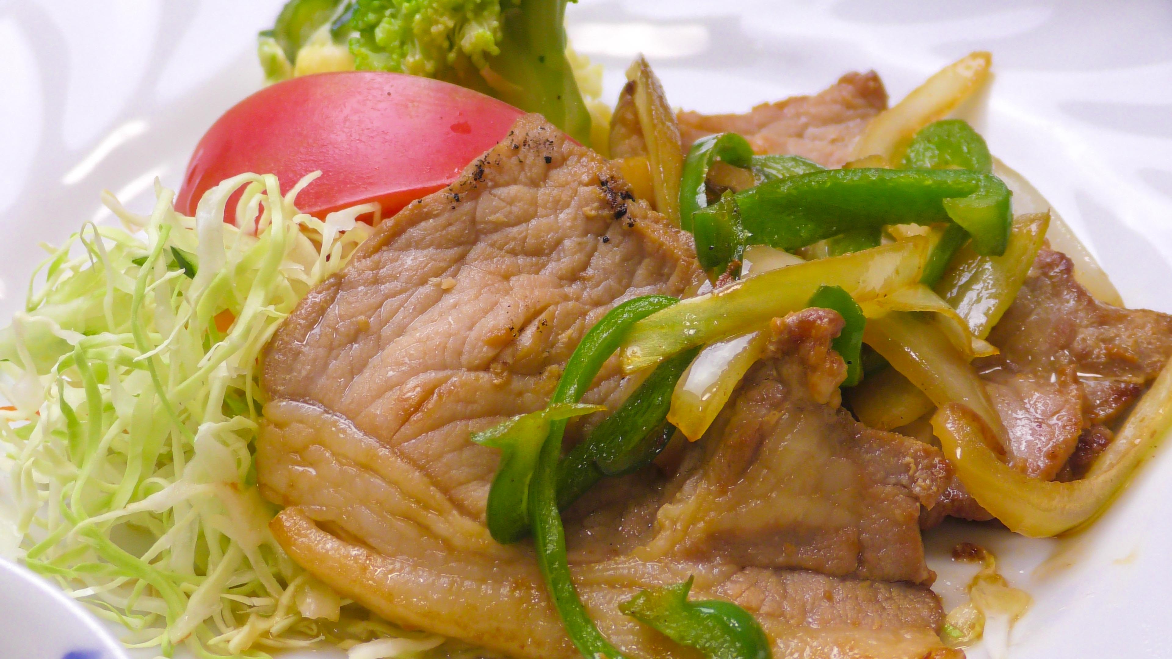 地元の国産豚肉の生姜焼きは、肉厚でジューシー。人気のメニューです。