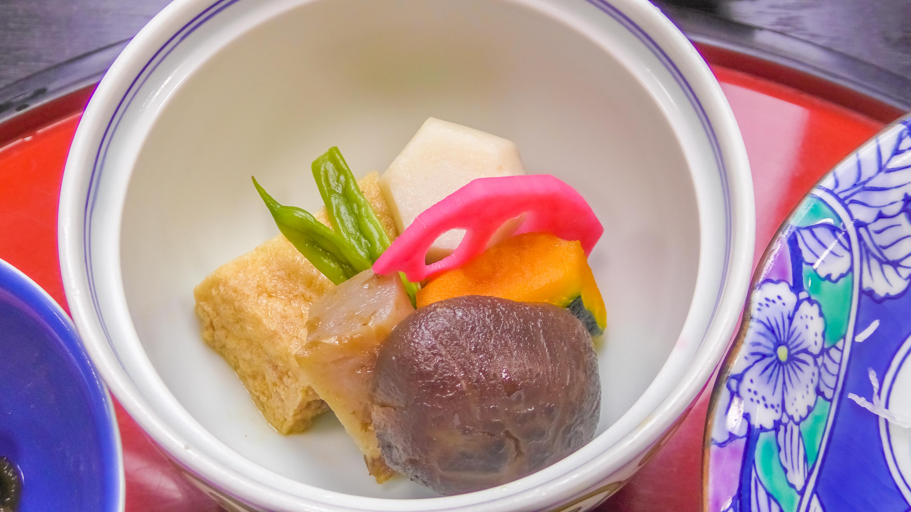 旬の野菜で作る品数豊富な煮物と小鉢は、低カロリーで健康的。城下町で代々受け継がれて来た手作りの味です。