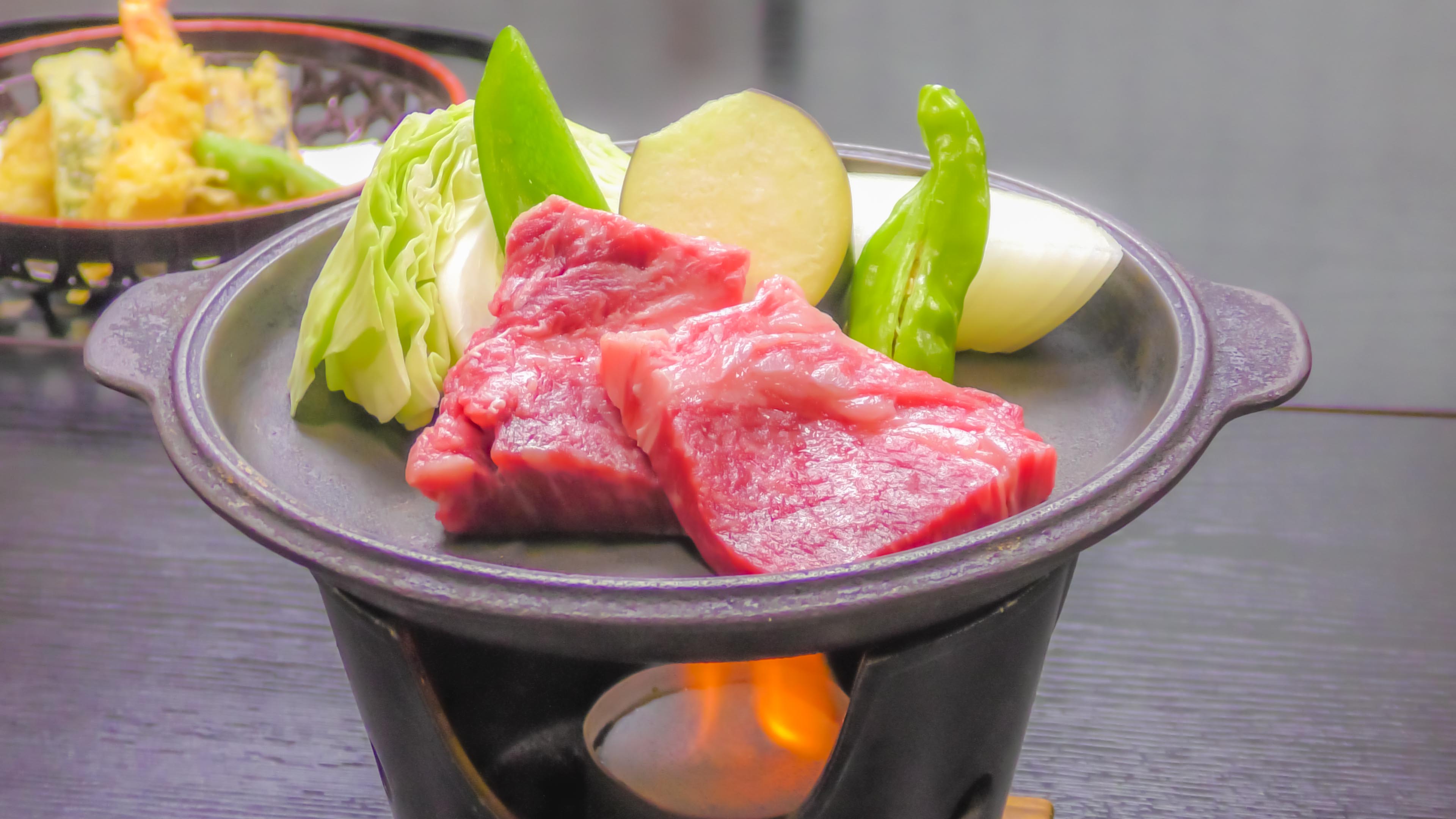 ご希望のお客様には、鉄板牛焼き肉付きの会席料理をご用意。